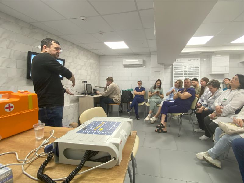 Доктор поделился собственным опытом, навыками, умениями и знаниями с нашими коллегами, рассказал о том, как правильно диагностировать состояния, требующие оказания экстренной медицинской помощи при анафилактическом шоке, внезапной сердечной смерти, судорожном синдроме, обструкции дыхательных путей, а также при других неотложных состояниях.