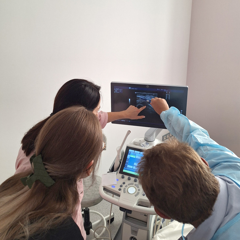 Заведующий отделением анестезиологии Григорий Израилевич Цинкерман и врач-анестезиолог Сергей Иванович Сукочев провели мастер-класс по проведению регионарной анестезии под контролем УЗИ. Это мероприятие было очень полезным для наших специалистов, которые смогли получить новые знания и опыт от своих коллег.
