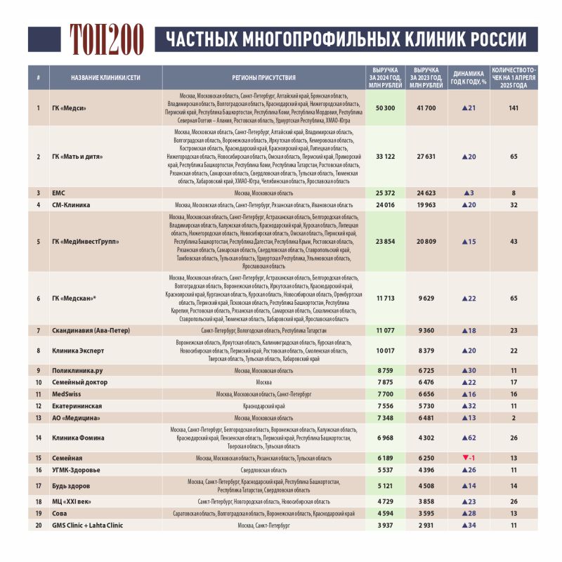 Сеть клиник «СОВА» заняла 19-е место в ТОП-200 лучших частных клиник страны
