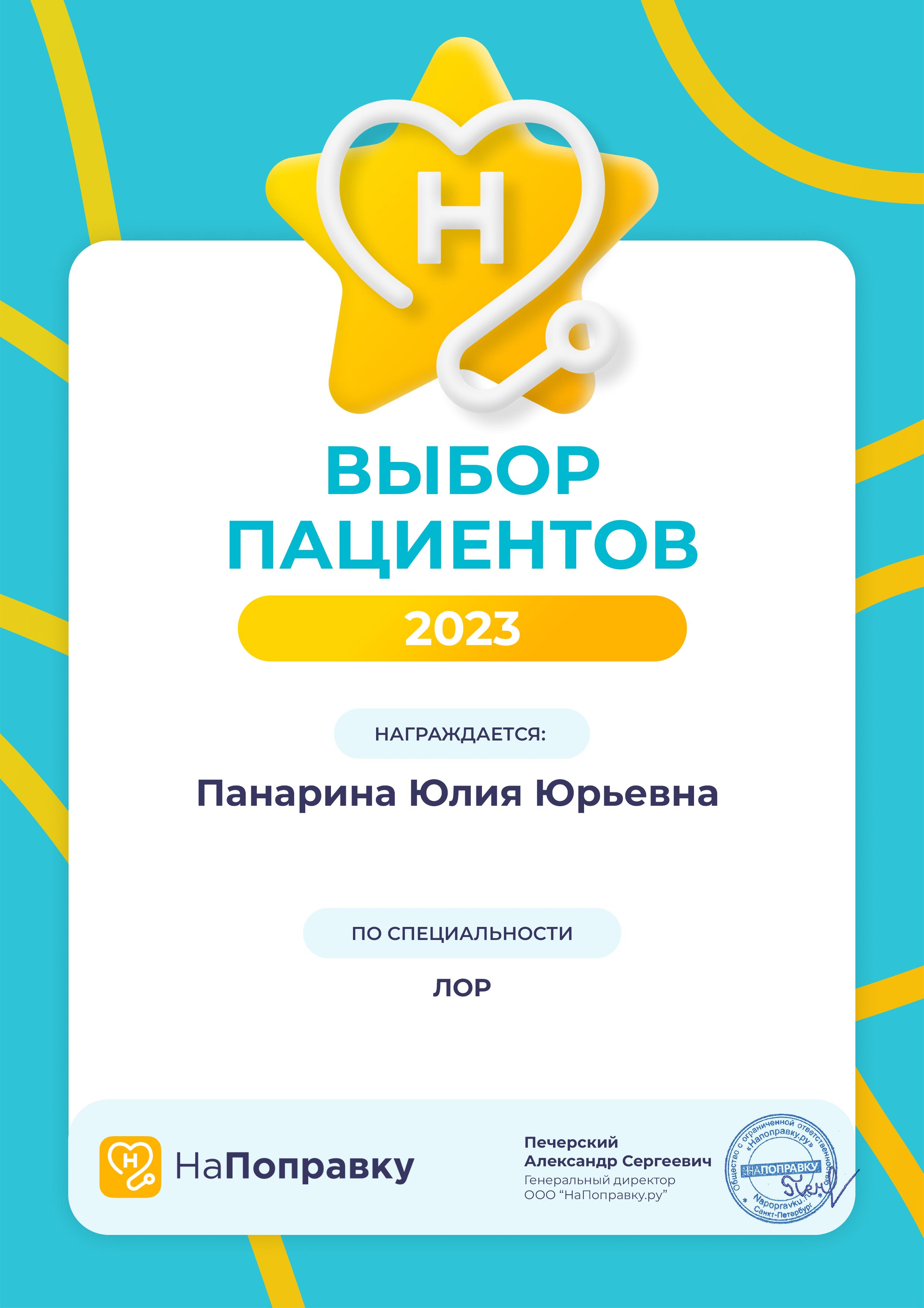 Отзыв о докторе Панариной Ю. Ю. Пару лет назад мы стали постоянно болеть с осложнениями. Педиатр разводил руками. По отзывам я нашла Аслану Анатольевну и не пожалела. Она увела нас с лечения антибиотиками. Мой ребенок стал реже болеть. Болеть без осложнений. А так же она нам порекомендовала Юлию Юрьевну. Мы наблюдаемся у Юлии Юрьевны. Лечим аденоиды. Замечательный доктор. Хороший человек. Очень мило общается с ребенком. Тщательно проводит осмотр. Назначает правильное лечение и ставит точный диагноз. Рекомендую данного врача.