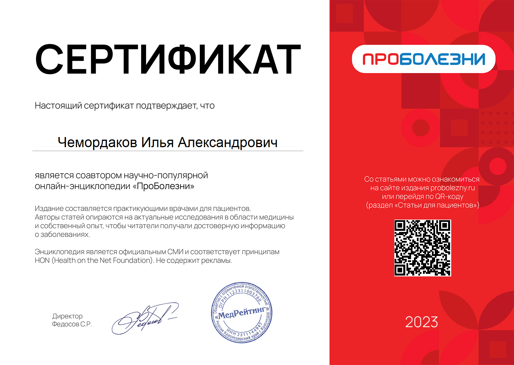 Мой лечащий врач невролог Чемордаков, это лучший Доктор из всех у кого я наблюдалась за 15 лет заболевания! Очень рекомендую его!