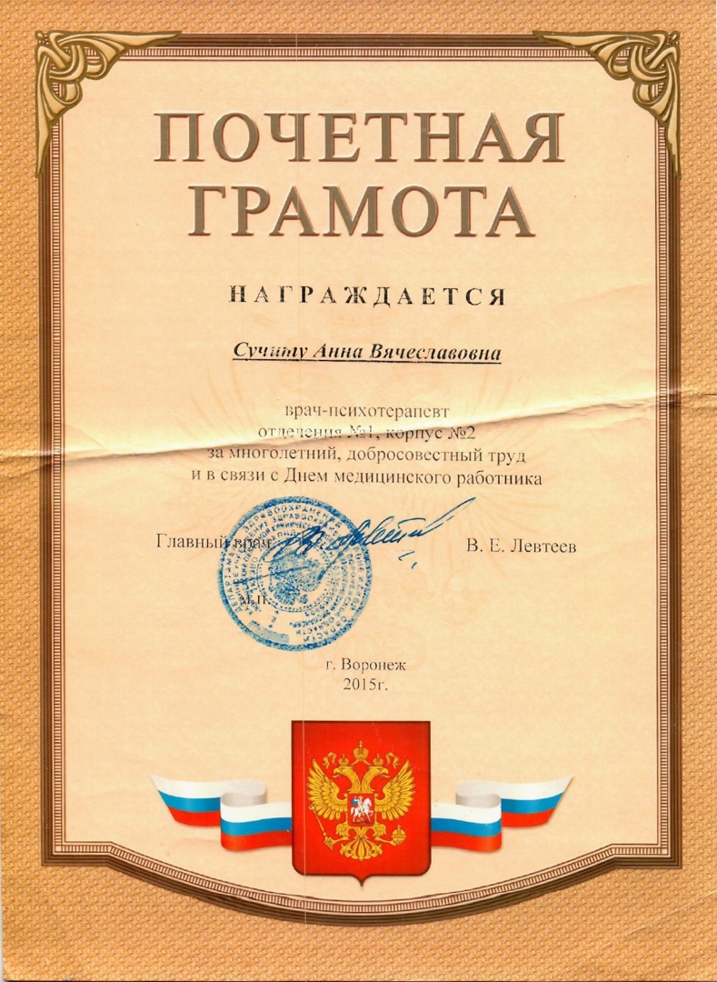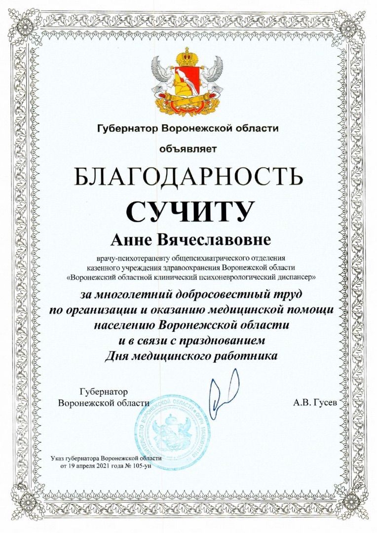 Всероссийская премия ПроДокторов 2022: 3 место в категории "Психотерапевты" по Воронежской области.