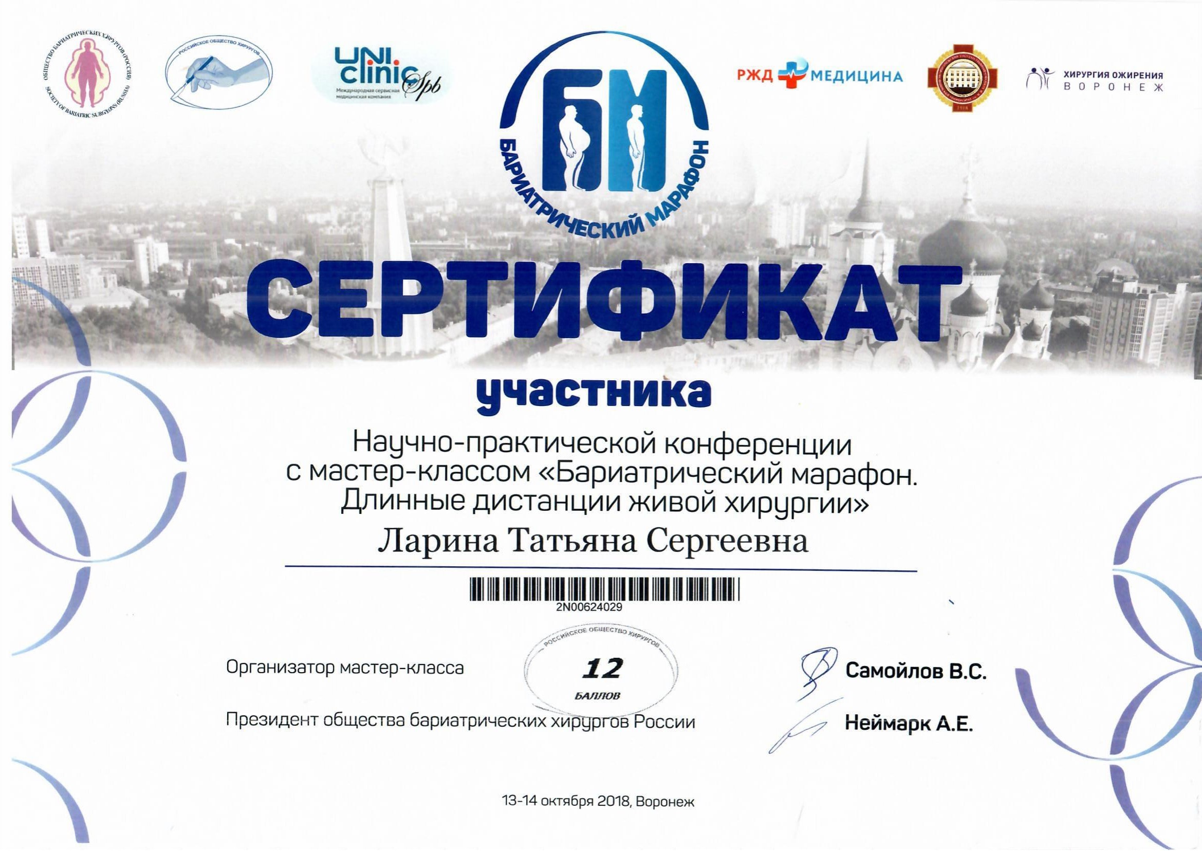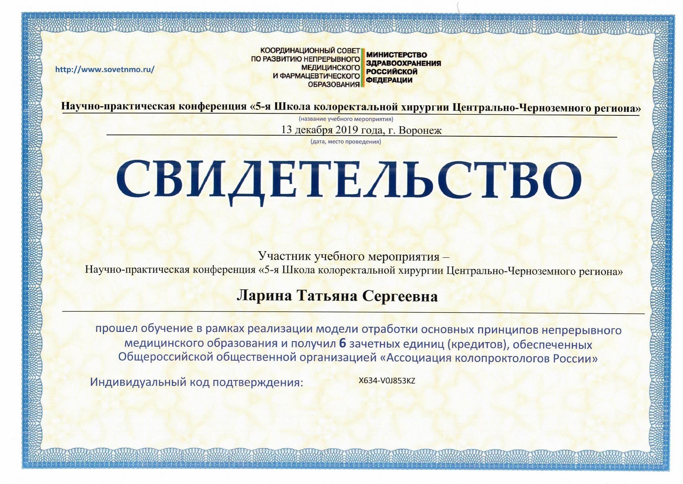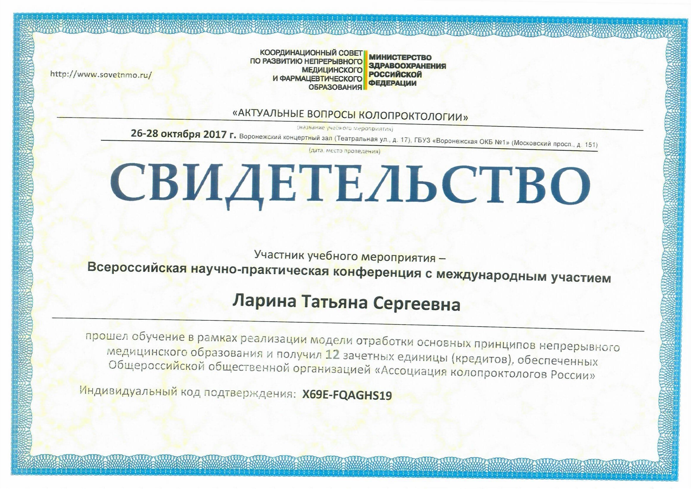 • Удостоверение о повышении квалификации № 313600574433  от 28.06.2018 по программе «Актуальные вопросы хирургии», выдано ФГБОУ  ВО «Воронежский государственный медицинский университет им. Н.Н.  Бурденко» Минздрава России;