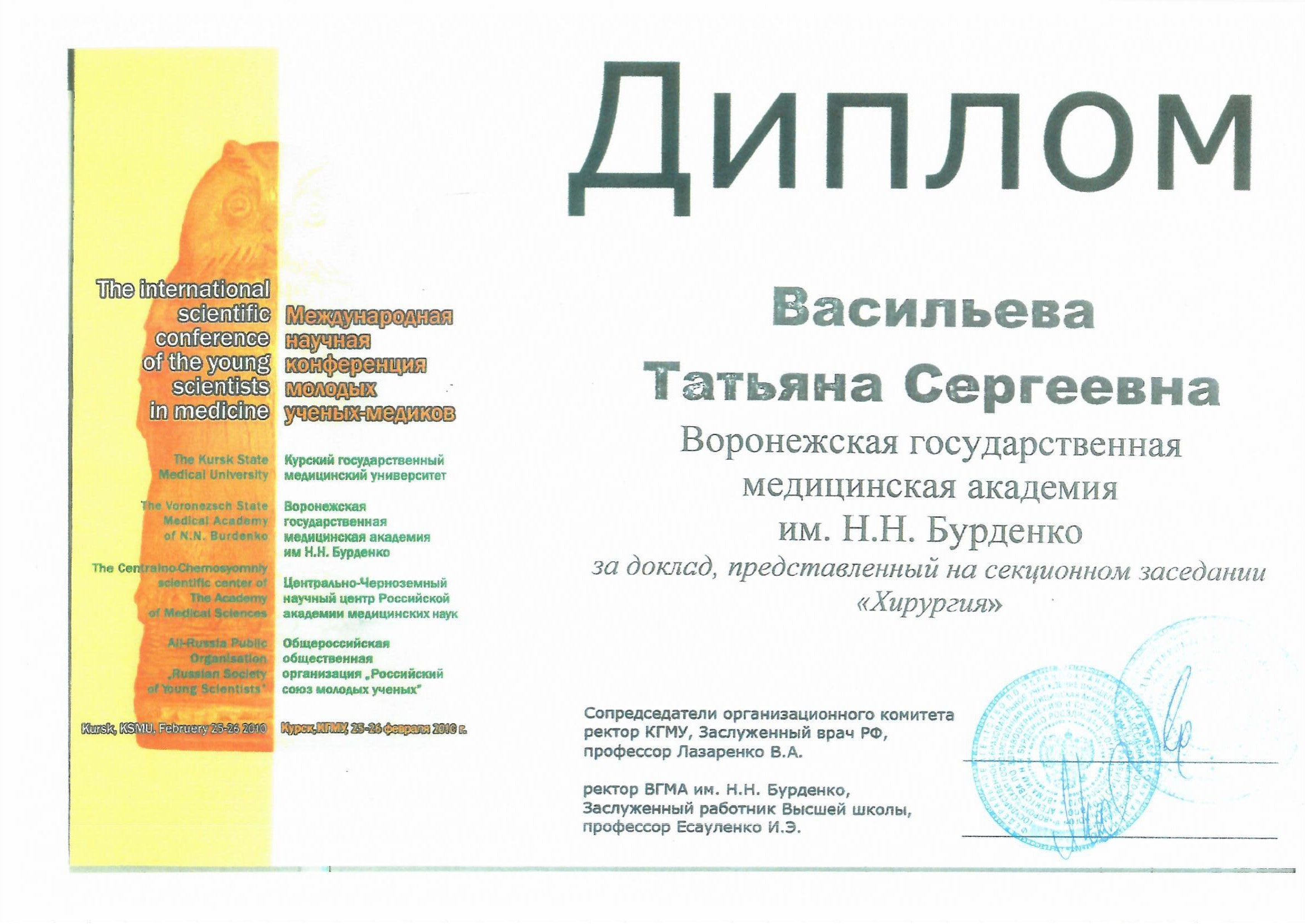 Всероссийская премия ПроДокторов 2021: 1 место в категории "Хирурги" по Воронежской области.